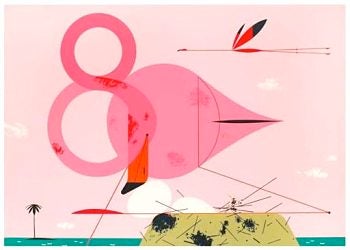 Left: John James Audubon's greater flamingo. Above: A flamingo by illustrator Charley Harper. |