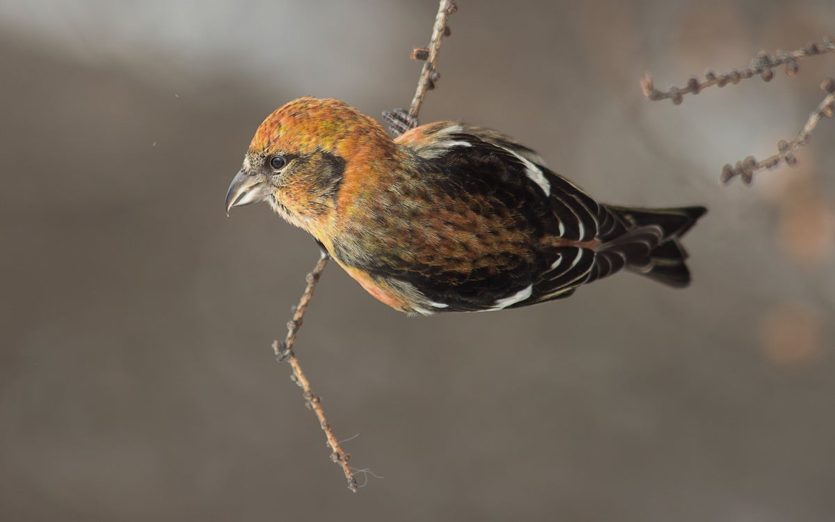 This chunky, big-billed finch wanders widely in winter, descending on bird feeders in colorful, noisy flocks, to thrill feeder-watchers and to consume prodigious amounts of sunflower seeds. Originally a western bird, almost unknown east of the Great Lakes before the 1890s, it now breeds commonly east to New England and the Maritime Provinces. Its eastward spread may have been helped by both the planting of box elders (a favorite food tree) across northern prairies, and the abundance of bird feeders in the Northeast.