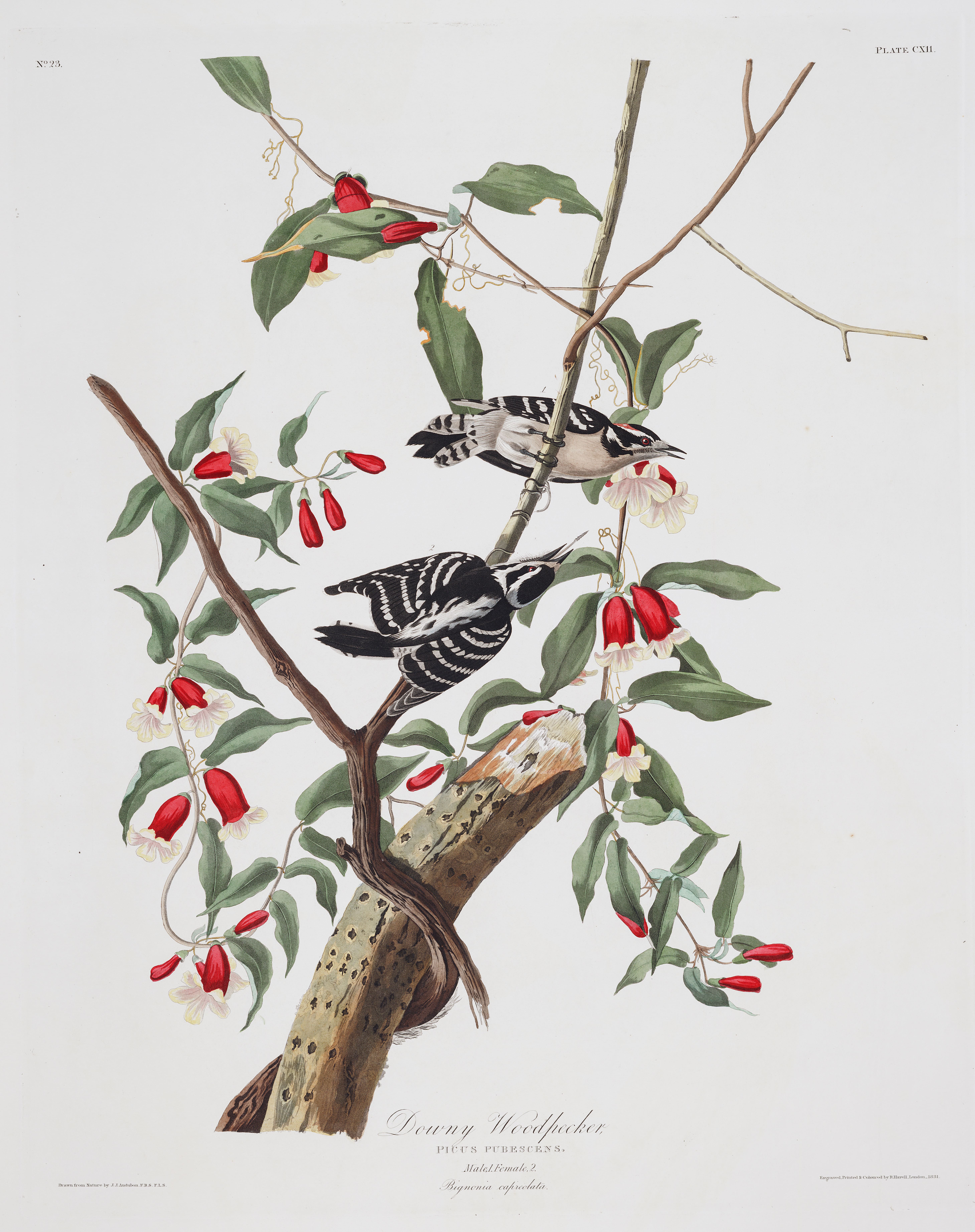 A big, dashing bird with a flaming crest, the Pileated Woodpecker is the largest extant woodpecker in North America. Excavating deep into rotten wood to get at the nests of carpenter ants, the Pileated Woodpecker leaves characteristic rectangular holes in dead trees. This species became rare in eastern North America with the clearing of forests in centuries past, but has gradually increased in numbers again since about the beginning of the 20th century. Where unmolested, it even lives in parks and woodlots around the edges of large cities.