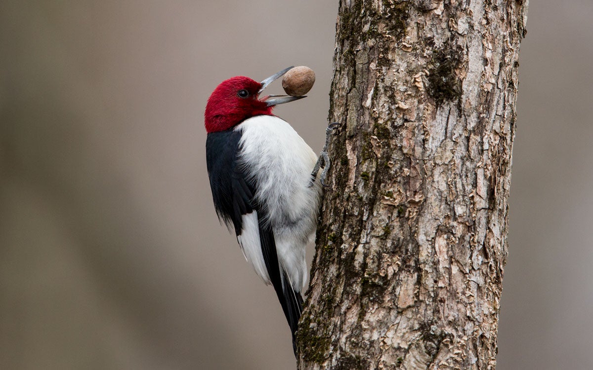 This striking and unmistakable bird was a favorite of early ornithologists such as Alexander Wilson and Audubon. Often conspicuous because of its strong pattern, harsh calls, and active behavior in semi-open country, it tends to occur in small colonies. Although it migrates only short distances, little groups of migrants may be noticeable in early fall and late spring. Once a very common bird in eastern North America, the Red-headed Woodpecker is now uncommon and local in many regions.