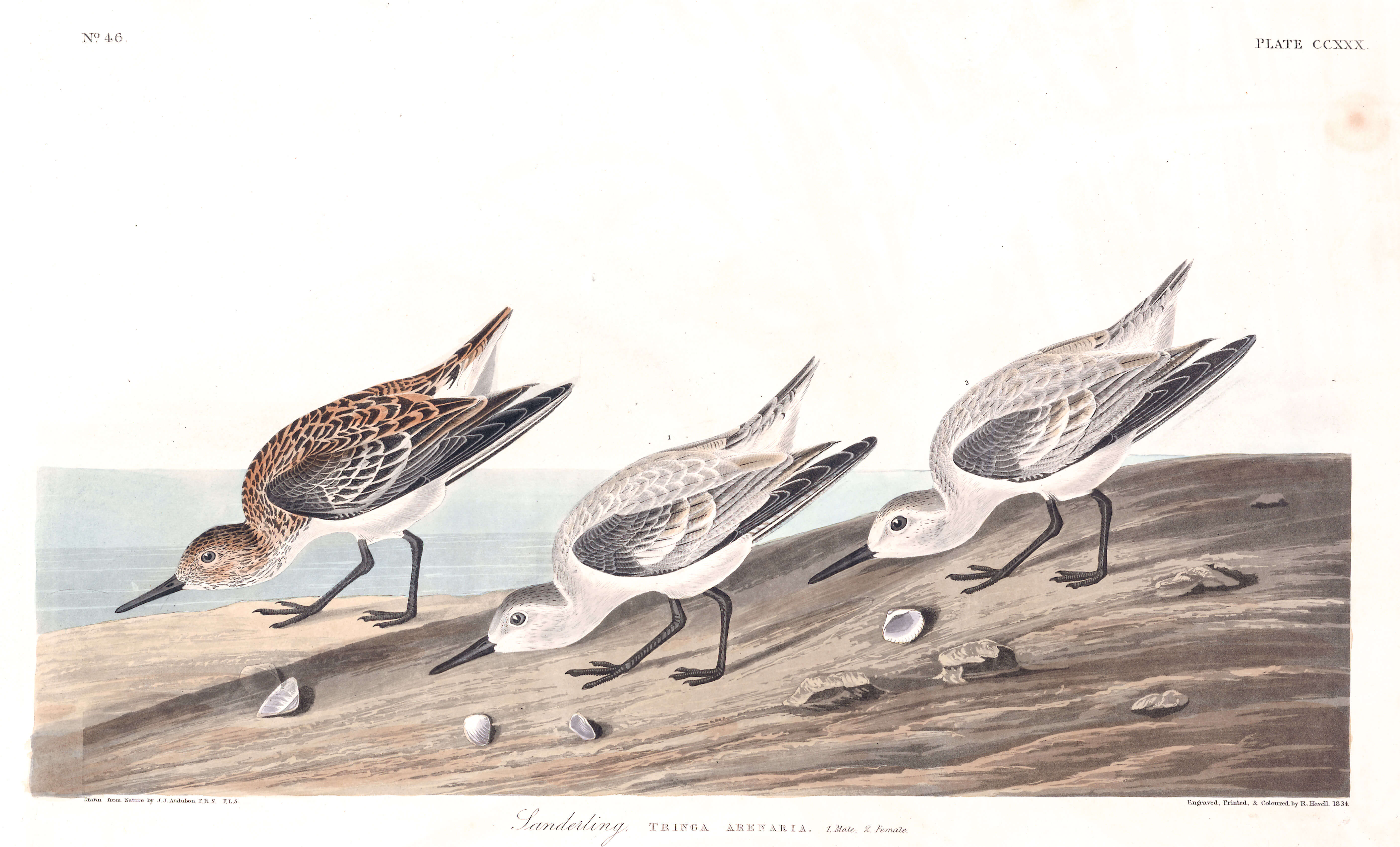 This is the little sandpiper that runs up and down the beach 'like a clockwork toy,' chasing the receding waves. Plumper and more active than most small sandpipers, and quite pale at most times of year, a good match for dry sand. Sanderlings nest only in limited areas of the far north, but during migration and winter they are familiar sights on coastal beaches all over the world.