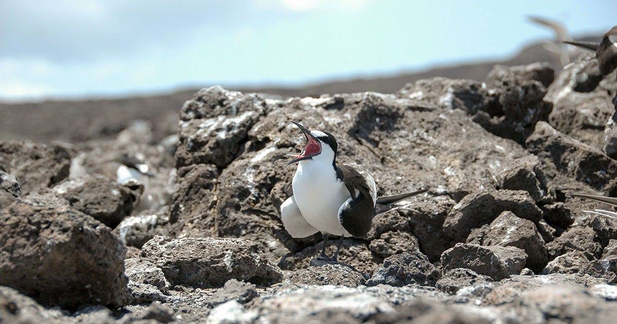 While most terns inhabit marshes and shores, the Sooty Tern has the life of a true seabird. A long-winged flier, it wanders tropical oceans, nesting on remote islands. Many nest in Hawaii, but North American birders often seek the species by visiting the islands of the Dry Tortugas, west of the Florida Keys. Noisy around its nesting colonies by day and night; a sailors' name for the bird is 'wide-awake.'