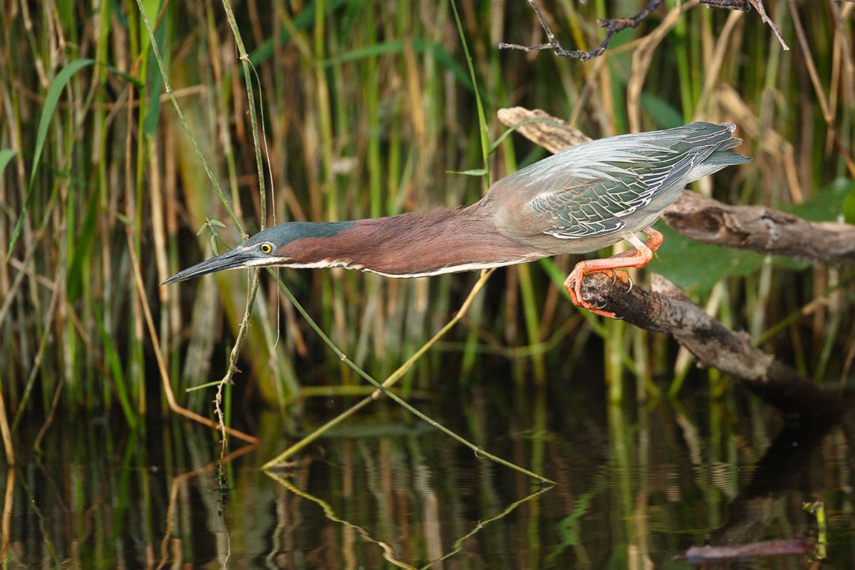 Seldom seen but often heard, this medium-sized rail lives in marshes across much of our continent. This bird and the Sora are often found together, but their diets differ: the short-billed Sora eats many more seeds, while the long-billed Virginia Rail eats mostly insects. Virginia Rails communicate with a wide variety of calls, and some of these can be mystifying to listeners; one, dubbed the 'kicker call,' was attributed to the elusive Yellow Rail for many years.