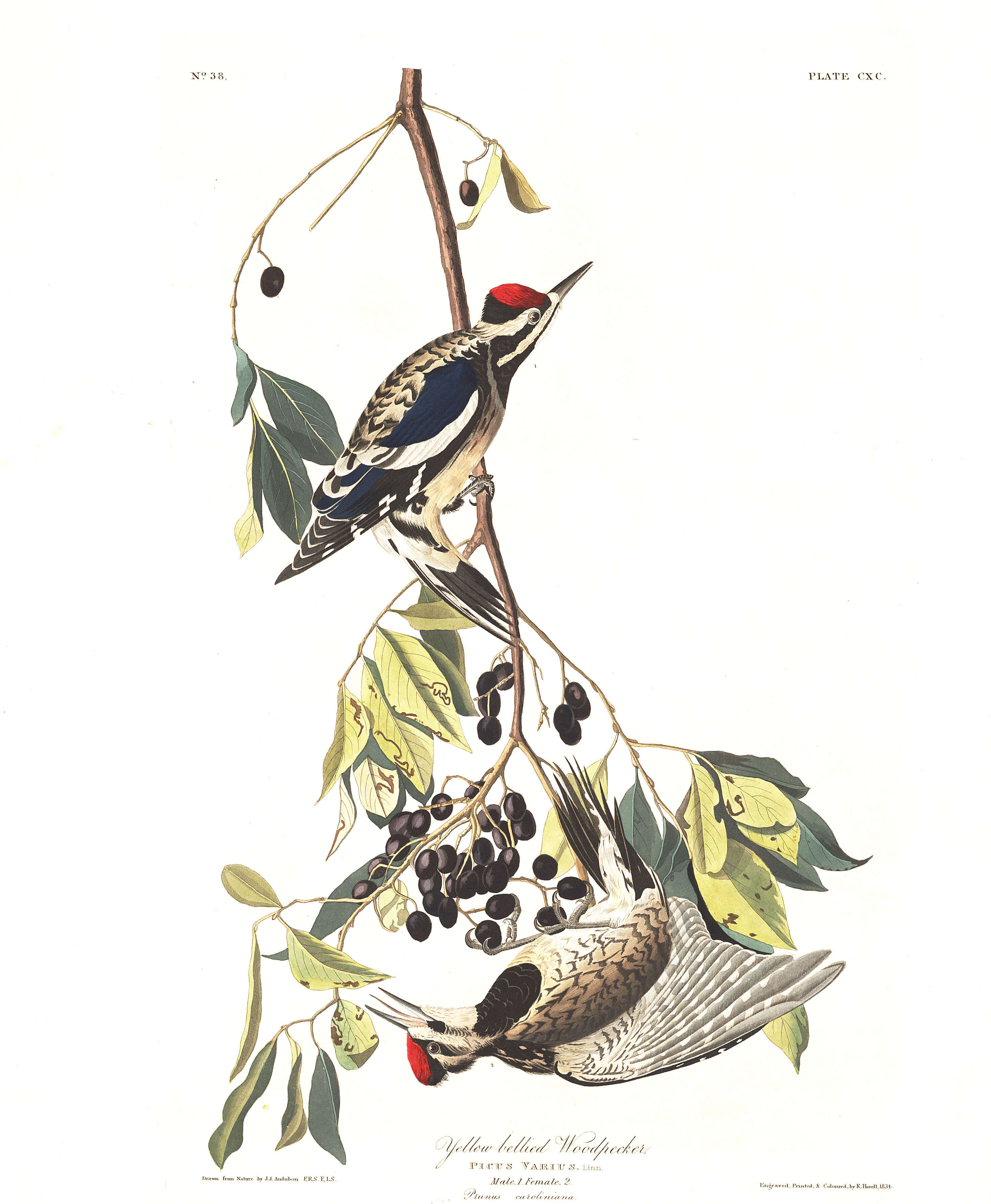 Although its name sounds like a cartoonist's invention, the Yellow-bellied Sapsucker does exist. This species is common in the north and east, and is replaced by close relatives in the west. Quiet in winter, it becomes noisy in spring, with cat-like calls and staccato drumming.