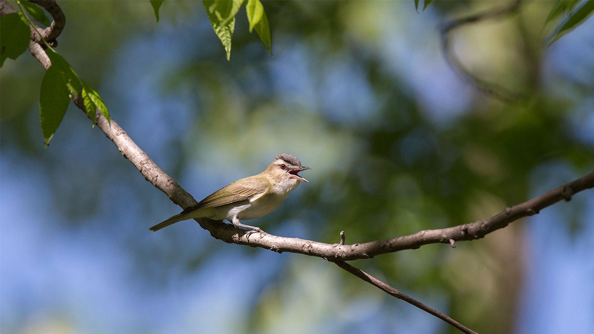 In leafy eastern forests, especially among the tall oaks, the slow, husky phrases of the Yellow-throated Vireo can be heard in spring and summer. More colorful than most vireos, it is not any easier to see, usually remaining out of sight in the foliage. However, the male sings throughout the breeding season, as late as August and September.