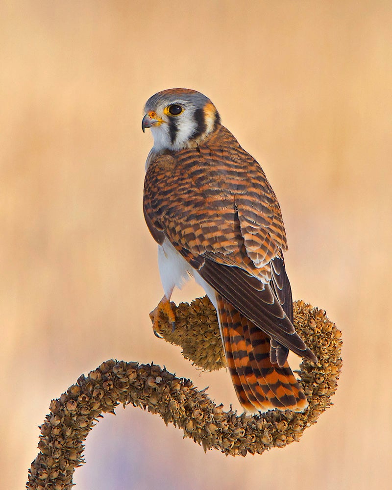Living outside of Boulder, Fi Rust often sees kestrels near her home in winter. She was driving around on Valentine’s Day last year when she spied this “little girl” up in a tree and placed a dried stalk of mullein in the snow nearby. “I waited and waited, and she just came and landed on it,” says the 58-year-old pro. “I photographed other raptors that morning, but she was the prettiest.”