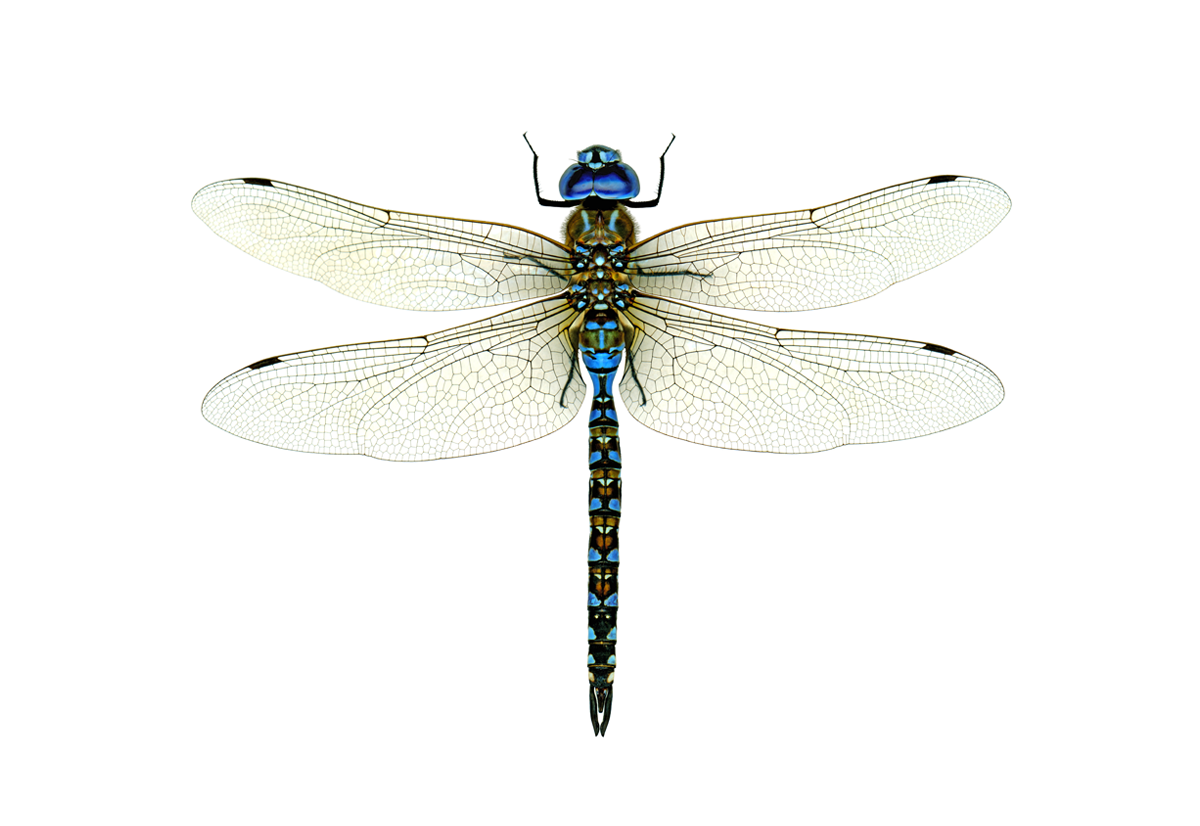 The mature male eastern pondhawk (Erythemis simplicicollis) is soft blue in color but has a green face and white “cerci”—appendages at the tip of the abdomen. The eastern pondhawk frequents ponds, lakes, and slow-moving rivers and streams.