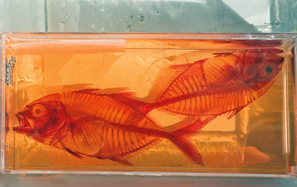 Cleared and stained specimens of youg horse-eye jacks (Caranx latus) from Dominican Republic, Santo Domingo. ANSP Ichthyology Department. This is a species that was first described by Academy member Louis Agassiz (1807-1873) in 1831.