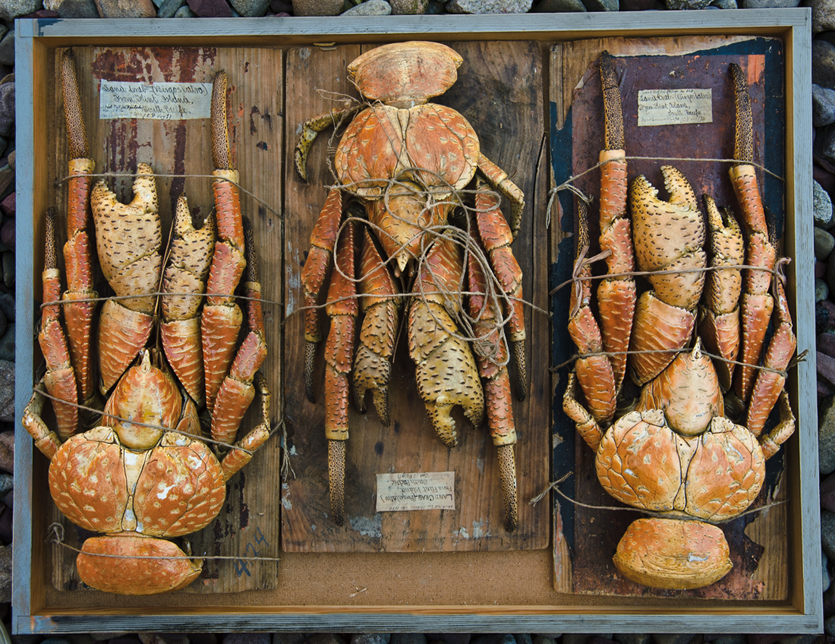 Coconut crabs (Birgus latro) collected on Flint Island (an uninhabited coral atoll four hundred nautical miles northwest of Tahiti in the Central Pacific) by C.D. Voy in 1875. ANSP General Invertebrates Collection. The specimens were donated to the Academy by Annie P. Cope in 1901.