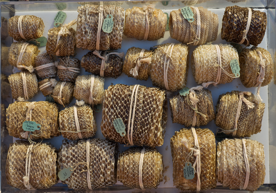 Shed snake skins collected by George M. Feirer in 1942. ANSP Herpetology Department.