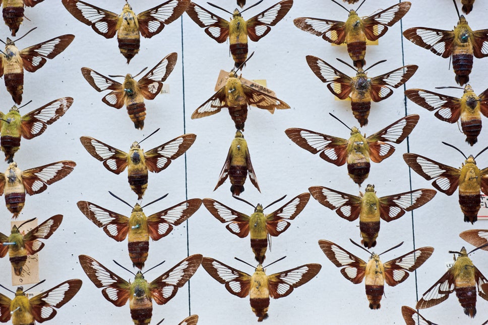 Collection of sphinx or hawk moths (Hemaris thysbee) from eastern North America. ANSP Entomology Department.
