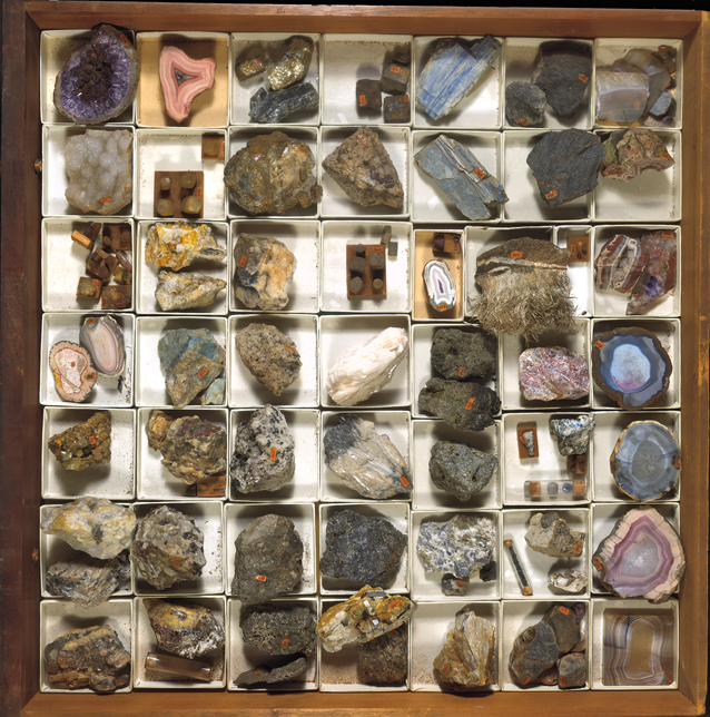 Drawer of minerals from the Seybert Collection, purchased by the Academy members in 1812. Cabinet dated 1825. ANSP Mineralogy Department.