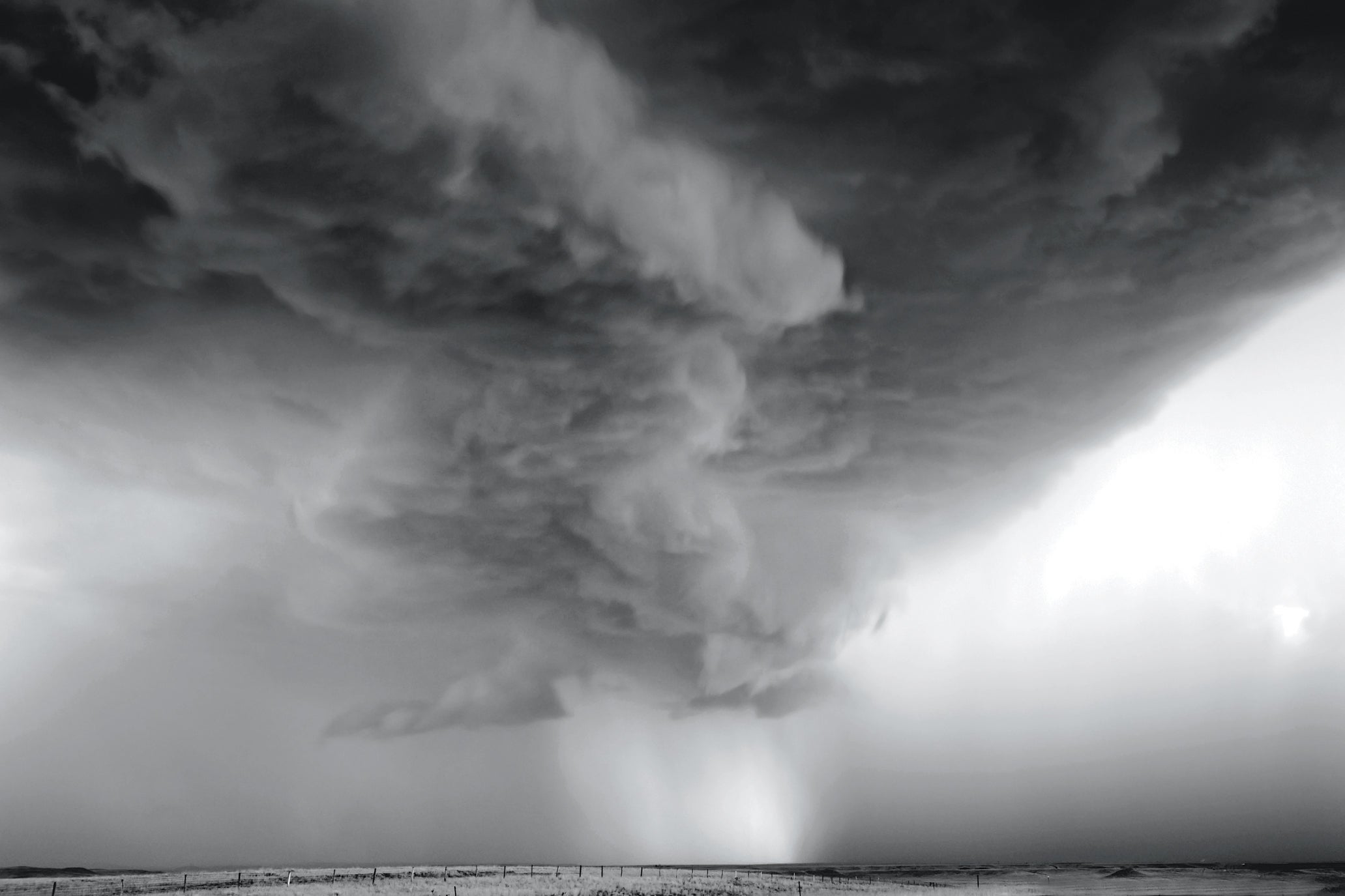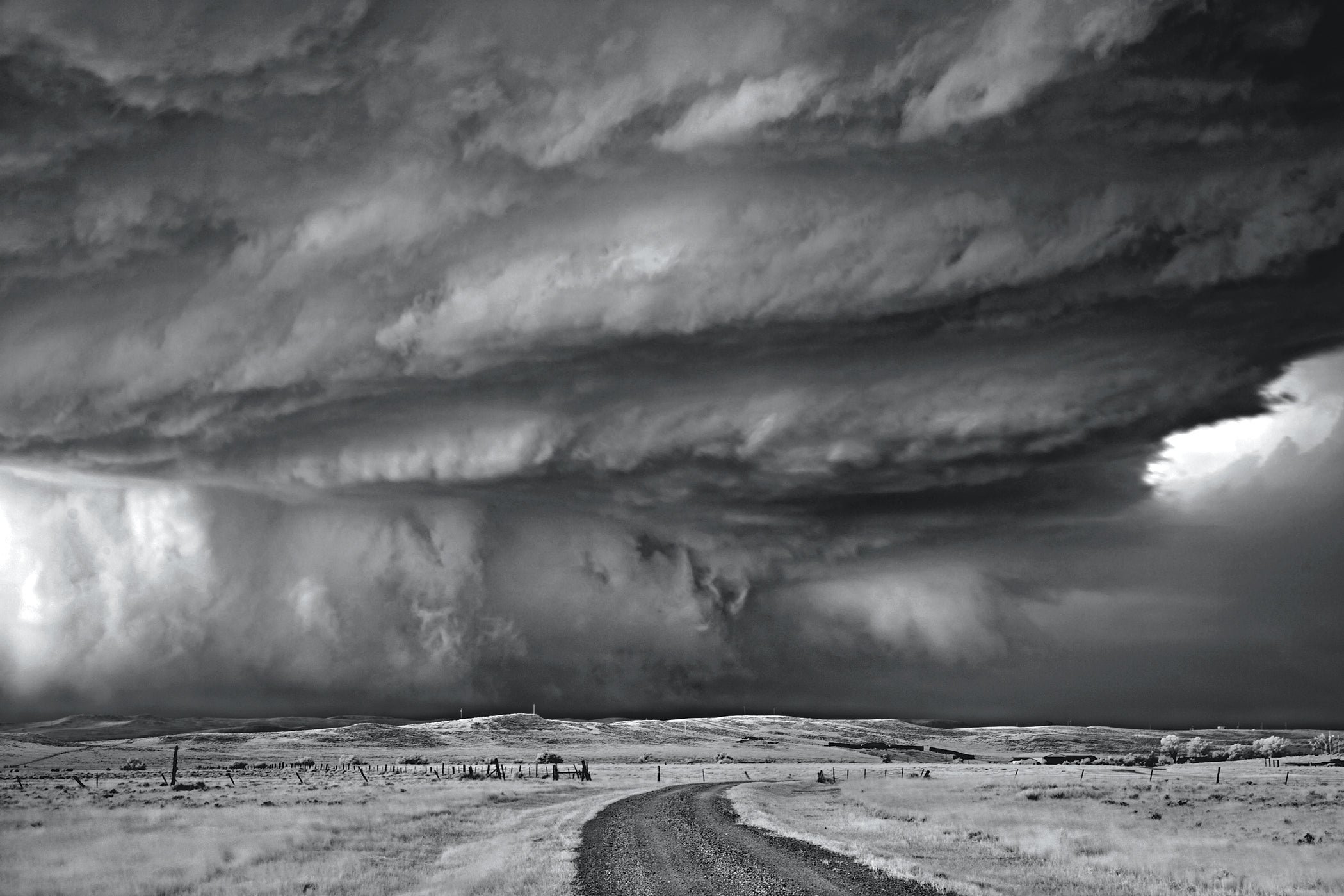 Moorcroft, Wyoming, July 19, 2010. This classic supercell’s tiered structure signifies a strongly rotating updraft. “There’re some times where you chase after a storm, and there’re other times where you can’t get out of its way, and it chases you,” says Dobrowner. “[This] was one of those instances.”
