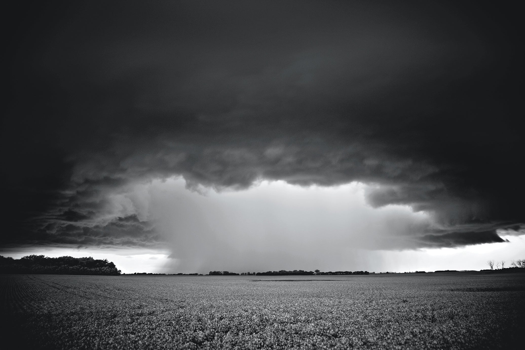 Near Lawndale, Minnesota, July 13, 2010. “That storm system took on so many different forms,” says Dobrowner. “[This shot] looked like an atomic explosion.” The dark area of clouds is the base of the storm’s updraft, which is comprised of warm air. Hail and rain pouring out the central core form the cooler downdraft, which is essentially scavenging the cloud away.