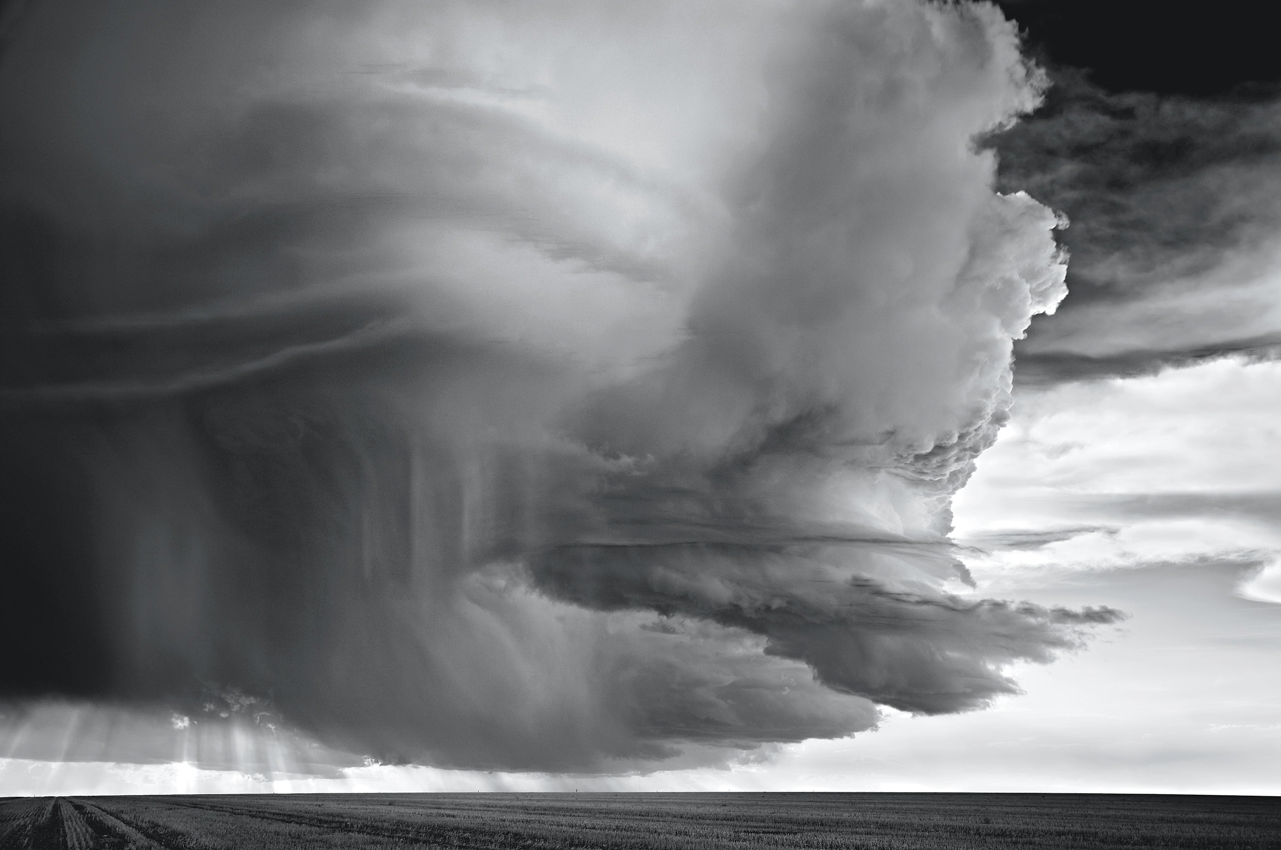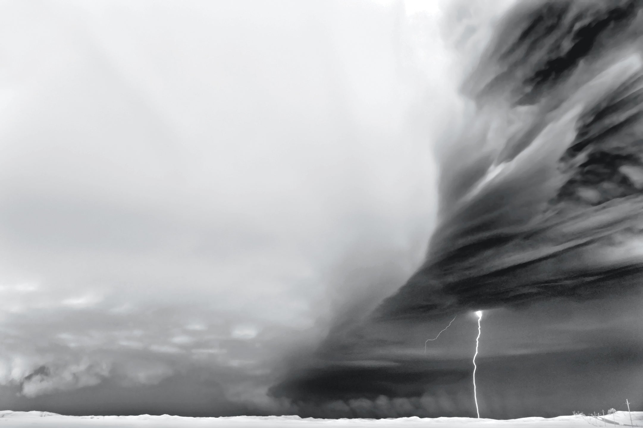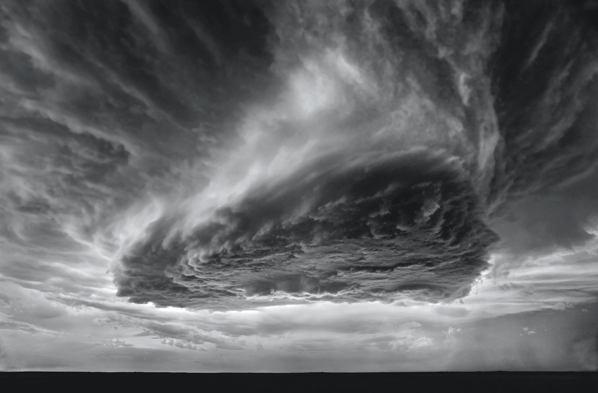Valentine, Nebraska, July 13, 2009. Dobrowner and Hill chased this 60,000-foot supercell for 11 hours. “Planes can’t fly through something like that—they’ll get destroyed,” says Dobrowner. The lighter gray area to the left indicates a mesocyclone, or the supercell’s rotating portion.