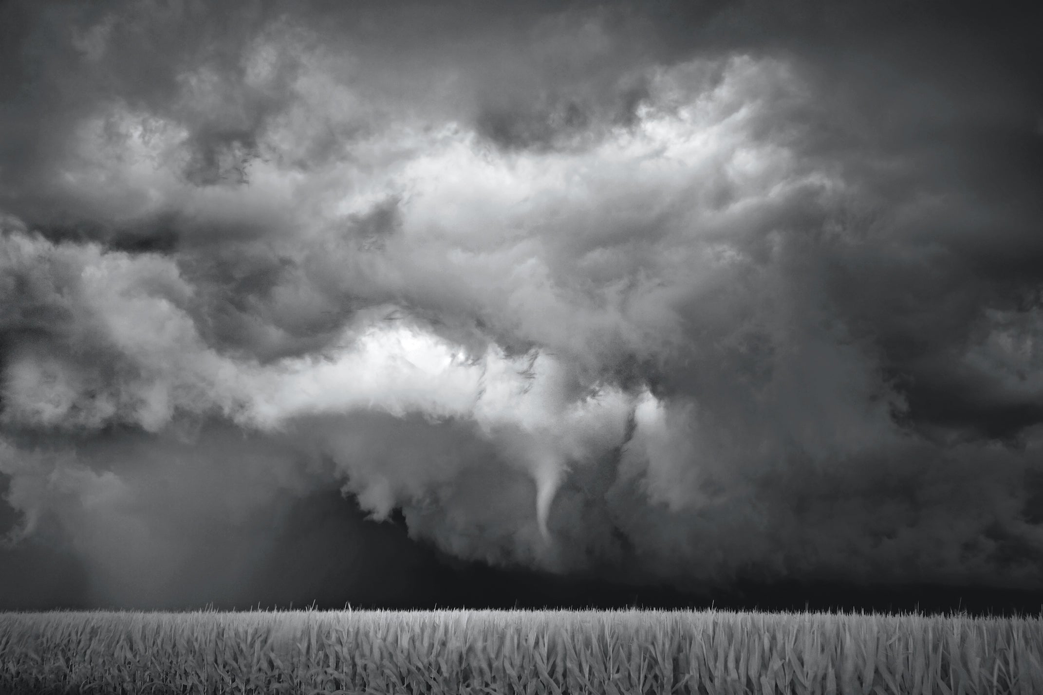 Northfield, Minnesota, July 14, 2010. The state has never seen as many tornadoes as it has this year. The supercell pictured dropped three, and this tornado turned over a semi truck. The turbulent clouds indicate that the view is from behind the storm. From the front, supercells often appear more laminar, or smooth.