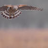 por lo general, caza observando desde una posición elevada, ya sea dentro del bosque o en lugares abiertos, y baja en picada cuando localiza la presa. A veces vuela muy por lo bajo en zonas abiertas y toma a sus víctimas por sorpresa. Puede llegar a utilizar los sentidos del oído y de la vista para localizar a la presa.