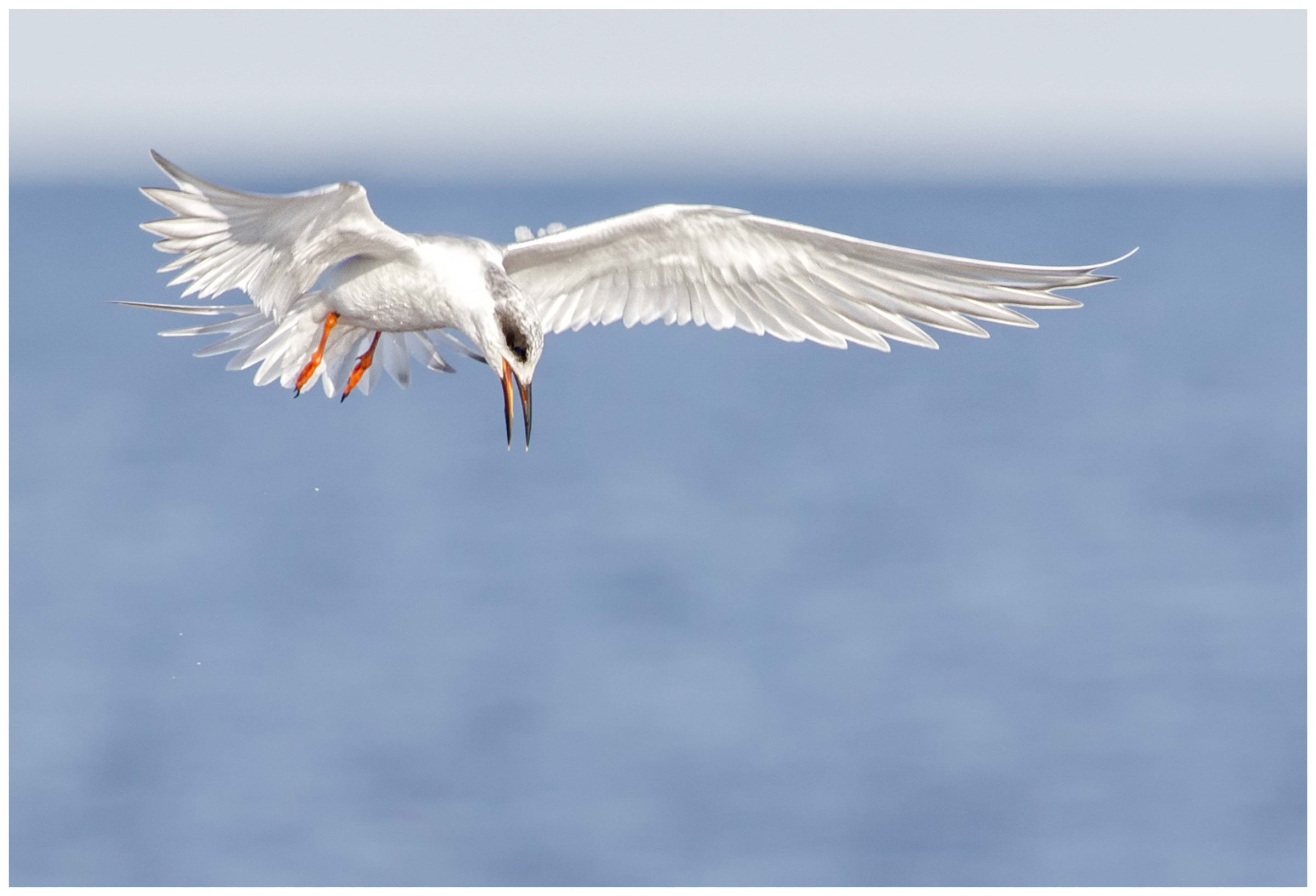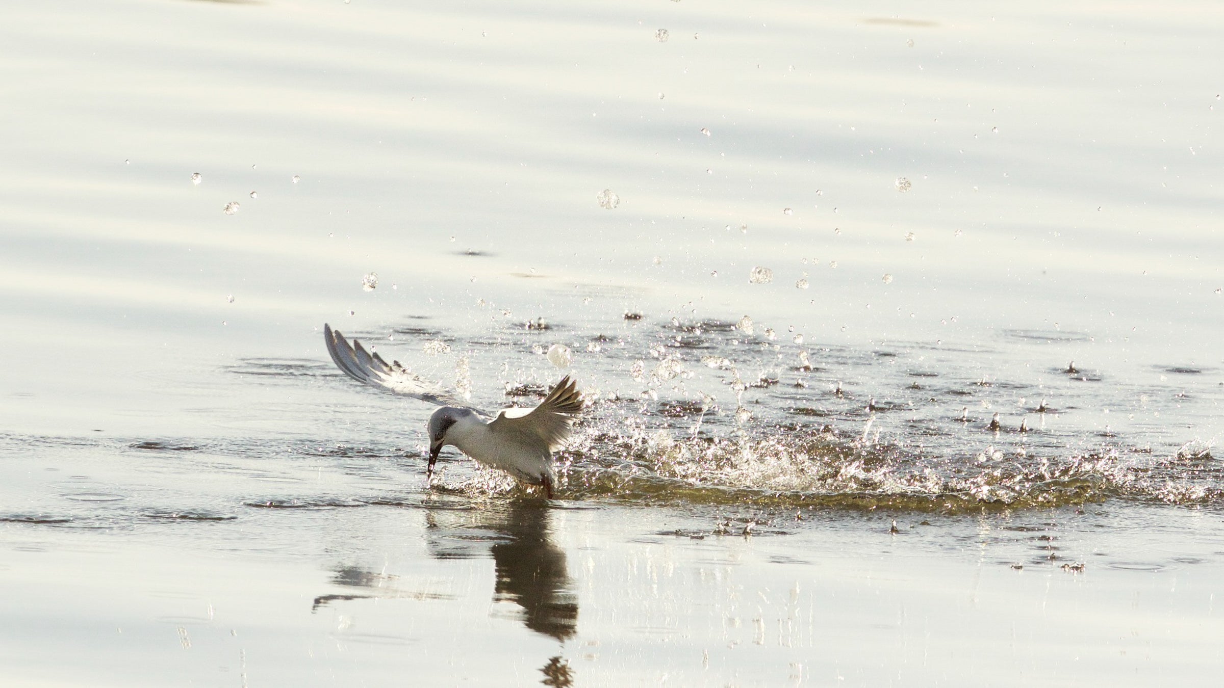Para buscar alimento, vuela, se cierne sobre el agua y se sumerge para recoger los peces justo debajo de la superficie. También se sumerge en pleno vuelo para tomar el alimento de la superficie, y captura insectos en vuelo.