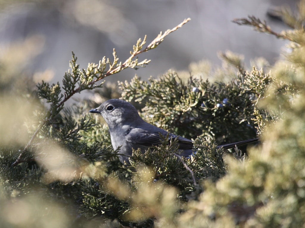 Bosques de coníferas en las montañas, acantilados rocosos; durante el invierno, en chaparrales, bosques de piñoneros y enebros, bosques abiertos, arroyos arbolados. Se reproduce principalmente en bosques abiertos de coníferas en las montañas, donde las laderas rocosas o los bancos de tierra expuestos proporcionan lugares para nidificar; más al norte, puede estar en áreas quemadas o en hábitats de vegetación baja cerca de esos bancos. En invierno, habita en bosques semiabiertos y matorrales, especialmente alrededor de árboles de enebro.