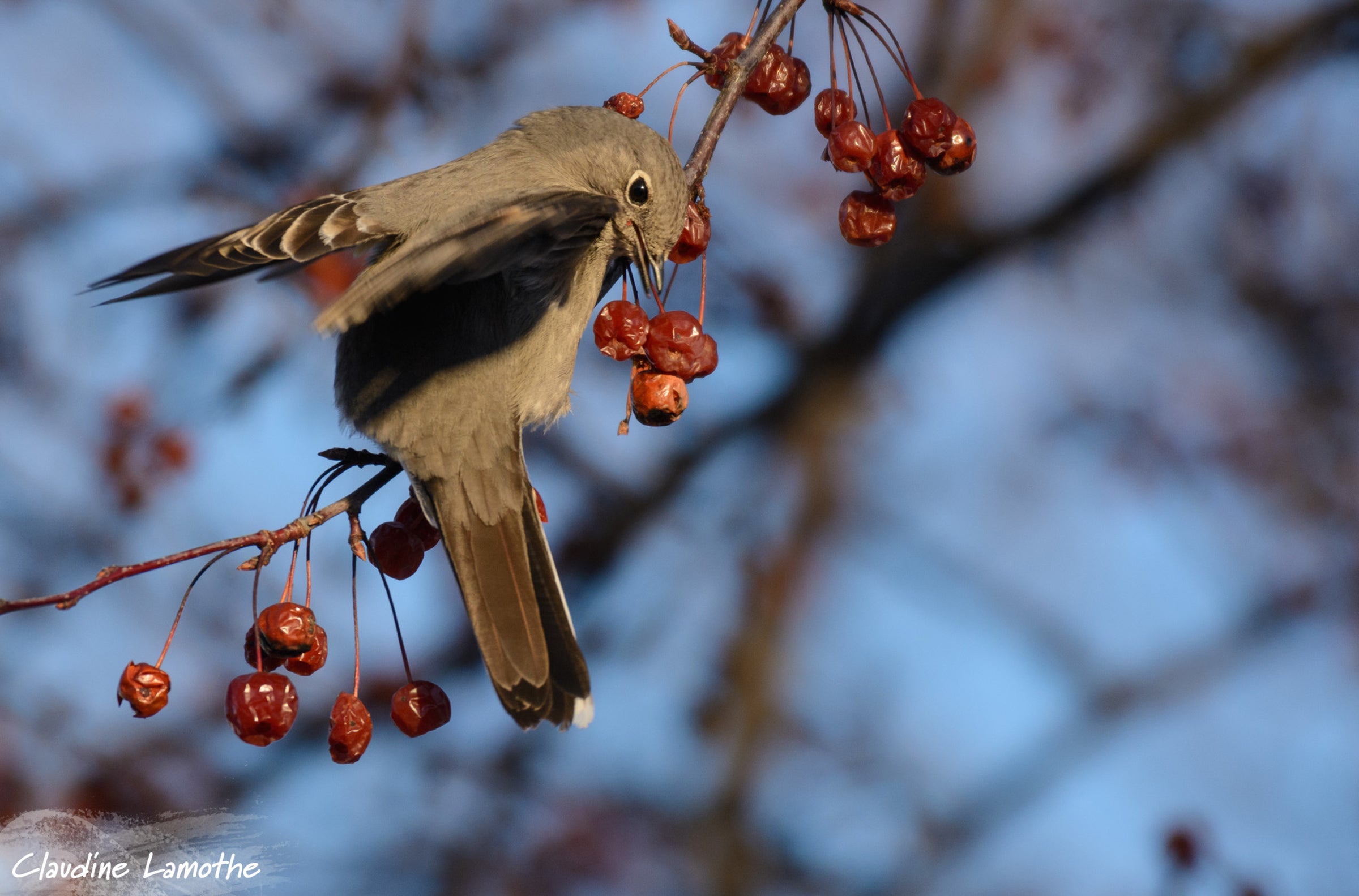 Migra relativamente tarde durante el otoño y a principios de la primavera, aunque los ejemplares peregrinos pueden verse fuera de estación. El área donde pasa el invierno de año a año en función de la distribución de las bayas. Unos pocos ejemplares pasan el invierno al este del área de reproducción, en las Grandes Llanuras.