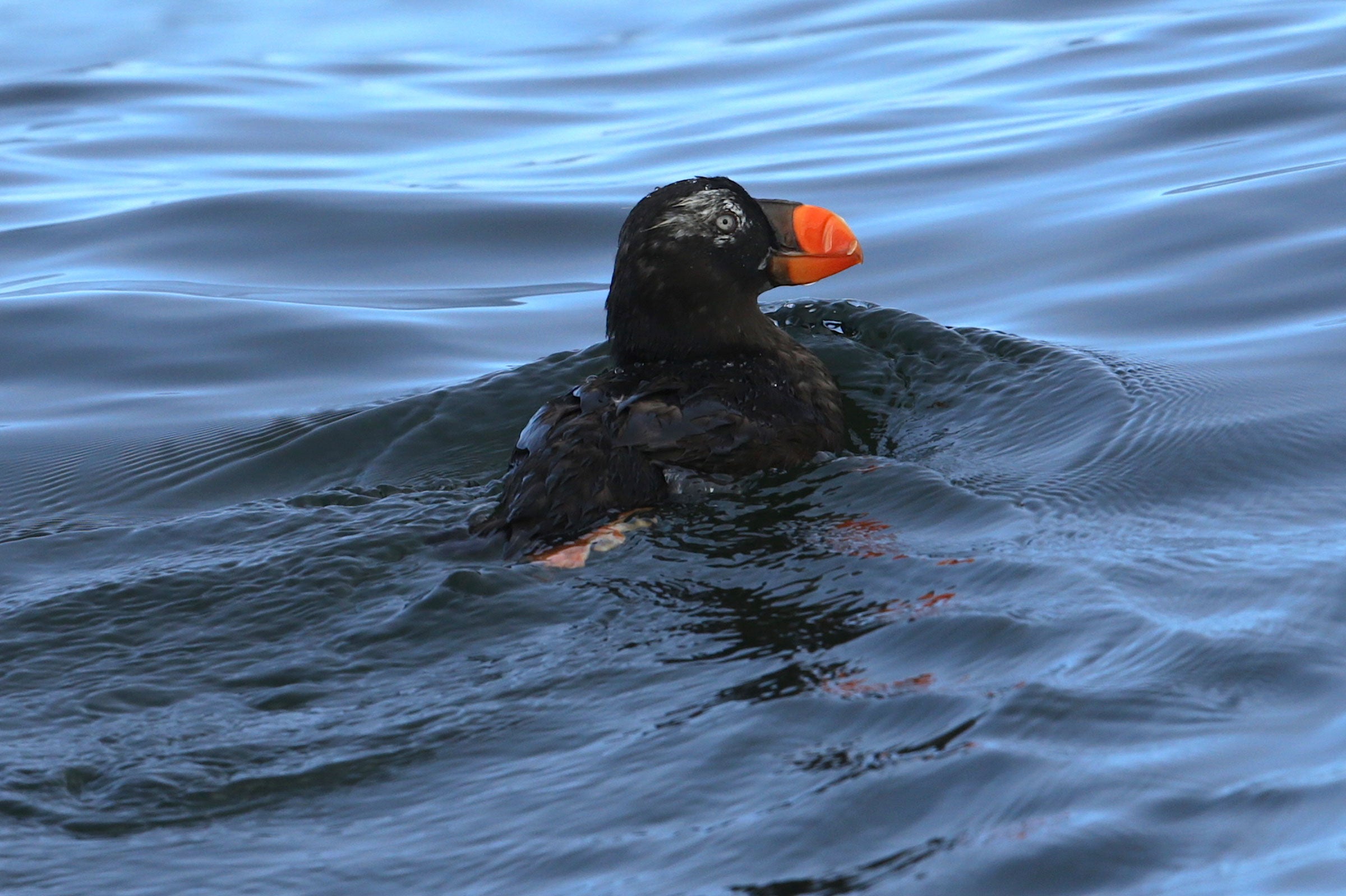 Este frailecillo de plumaje oscuro es común en la costa norte del Pacífico y nidifica en islas alejadas de la costa, donde se lo puede ver sentado sobre las rocas con una postura erguida. Aunque vuela muy bien, debe hacer un gran esfuerzo para despegar desde el agua, agitándose y golpeando la superficie antes de tomar vuelo. Sobre todo en verano, suele presentar coloridos penachos de plumas en la cabeza.