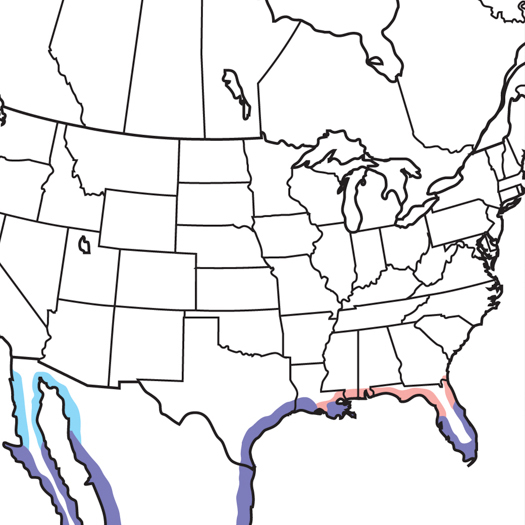 | Hábitat | Llanuras húmedas formadas por la marea en la costa, marismas de agua salada, costas y lagunas. Se alimenta sobre todo en aguas calmas de poca profundidad a lo largo de la costa y en bahías y estuarios protegidos. El hábitat de nidificación se encuentra principalmente en pantanos de mangles en Florida y en islas costeras áridas cubiertas de arbustos espinosos en Texas. |