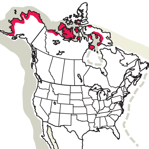 | Hábitat | Océano; nidifica en la tundra. Durante el verano vive en la tundra costera baja y pantanosa, especialmente en zonas con muchos estanques y aguas poco profundas con mareas. Durante el período de migración y en el invierno, vive en el mar, a pocos kilómetros de la costa sobre la plataforma continental. En el invierno, se concentran donde hay afloramientos de agua fría cerca de las costas, al sur del ecuador. |