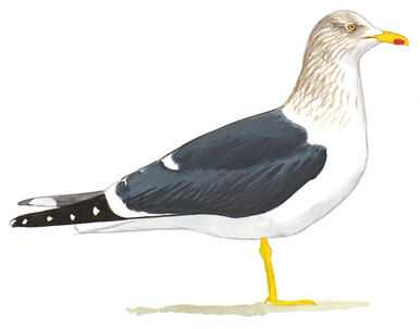 | Hábitat | Aguas costeras, estuarios, playas y muelles de la ciudad. Vive en la costa cercana, pero se encuentra en el mar en forma regular, especialmente entre la costa y las islas de nidificación. Visita vertederos de basura, estanques y áreas abiertas planas (como estacionamientos) a pocos kilómetros de la costa, pero casi nunca se encuentra tierra adentro. Nidifica en islas y acantilados continentales. |