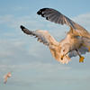 Oportunista. Busca alimento al caminar, vadear, nadar y volar. Puede robar el alimento a otras aves. A menudo busca restos de alimentos en los vertederos de basura y en otros lugares donde pueda encontrarlos.