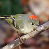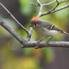 Durante el cortejo, el macho puede agazaparse en forma horizontal, aleteando y alzando las plumas rojas de la cresta mientras vuela. Nido: En general lo construye sobre píceas, y a veces, en otras coníferas; el nido está a una altura promedio de 12 metros sobre el nivel del suelo y puede llegar a estar a 27 metros de altura, o muy bajo en los bosques más al norte, donde los árboles son bajos. El nido está unido a las pequeñas ramas colgantes que están debajo de las ramas horizontales y se encuentra bien protegido por el follaje. La hembra construye un cuenco colgante profundo hecho de musgo, líquenes, corteza, telaraña, ramas y raíces pequeñas y acículas, y lo forra con plumas, pelusa vegetal y pelo animal.