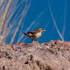 | Hábitat | Pendientes rocosas, cañones. Se reproduce en una variedad de lugares rocosos. Se encuentra en lugares elevados, desde cañones bajos hasta lo alto de las montañas, donde los alrededores son abiertos y áridos, pero hay pocos ejemplares en las regiones desérticas calurosas en verano. Pasa el invierno en lugares rocosos a baja altura; a veces, en diques rocosos o en escolleras de piedra debajo de los diques, especialmente cuando se dirige al este. Ante la ausencia de rocas, puede establecer su territorio de invierno alrededor de las pilas de pacas de heno, piezas de maquinaria agrícola u otros puntos de referencia. |