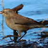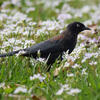 Busca alimento principalmente caminando sobre terrenos húmedos o vadeando en aguas poco profundas. Puede vivir solo o en bandadas. Puede unirse a bandadas de otros mirlos y alimentarse con ellos en campos secos.