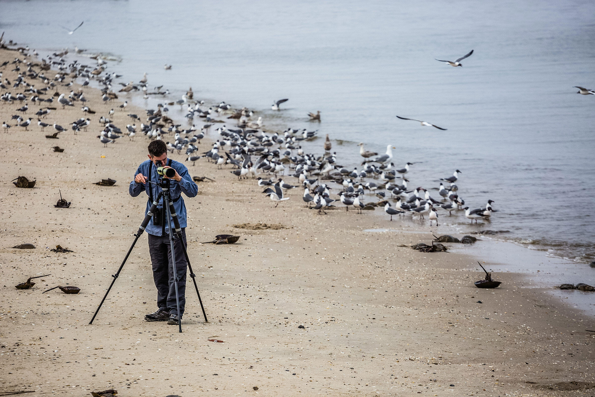 El 10 de mayo bien temprano, con binoculares y telescopio en mano, que había transportado desde Indianápolis, Bolden se dirigió a la playa Reeds situada en Cape May. Miles de gaviotas, Reidoras, Arenques y de Delaware—prácticamente cubrían la playa que se encontraba frente a él, y sus llamados eran casi ensordecedores. Justo después, al borde del agua, había cientos de cangrejos herradura: las hembras grandes tenían a dos, tres y hasta 11 machos adosados mientras depositaban los huevos en las olas.