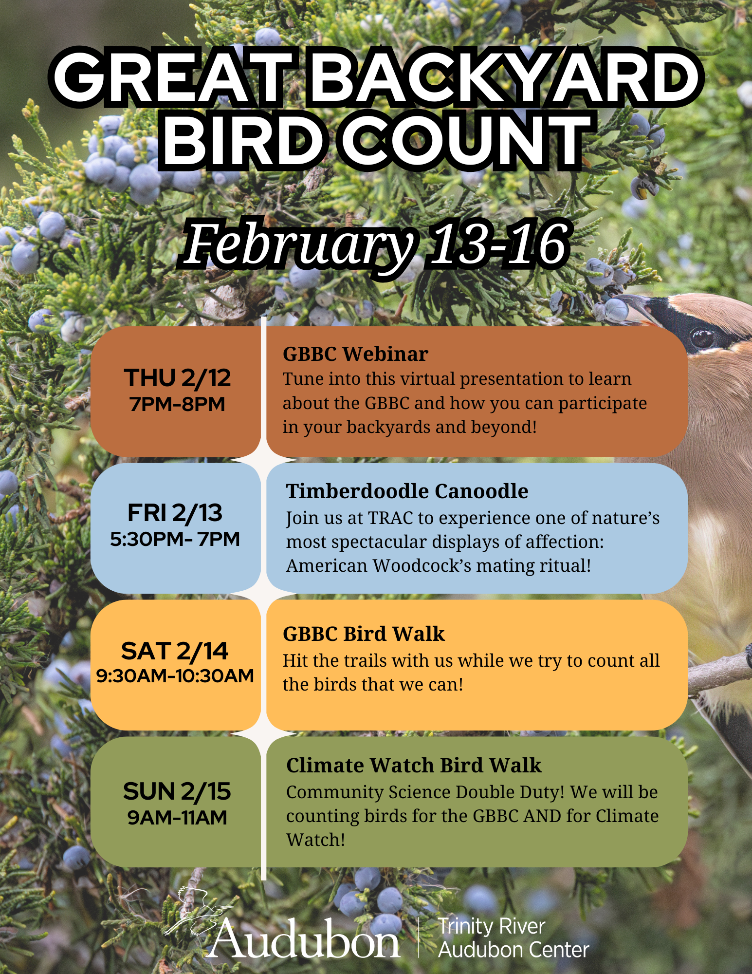 The annual Great Backyard Bird Count (GBBC) will take place from February 13-16, 2026. Join us for this fun, easy event to learn what the GBBC is all...