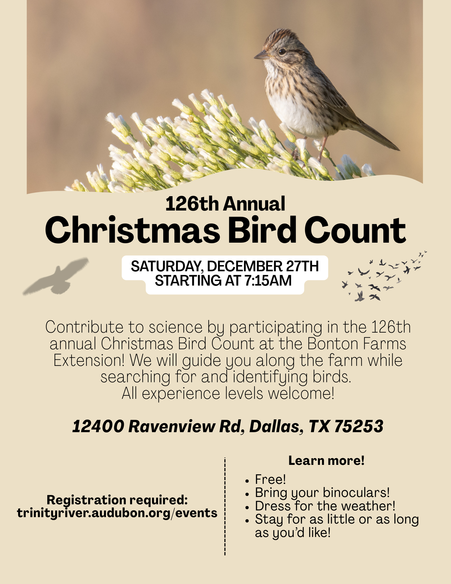 Contribute to science by participating in the 126th annual Christmas Bird Count at the Bonton Farms Extension! We will guide you along the farm while...