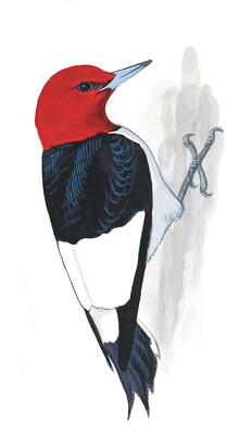 Breeding group consists of pair, usually assisted by additional birds, generally the pair's earlier offspring or other related individuals. Group may consist of 10+ birds (as many as 16), which defend communal food stores and nesting territory year-round. Nest site is a cavity in tree (almost always dead tree or dead branch of live tree), 5-60' above ground, usually 12-30'. Excavated by both sexes and by helpers.