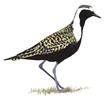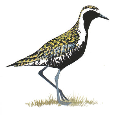 | Habitat | Prairies, mudflats, shores; tundra (summer). During migration, usually found on short-grass prairies, flooded pastures, plowed fields; less often on mudflats, beaches. Breeds on Arctic tundra. In western Alaska, where it overlaps with Pacific Golden-Plover, the American tends to nest at higher elevations, on more barren tundra slopes. |
