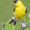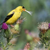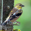 Forages actively in weeds, shrubs, and trees, often climbing about acrobatically on plants such as thistles to reach the seeds. Except during breeding season, usually forages in flocks. Commonly comes to feeders for small seeds.
