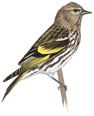 Mostly seeds, some insects. Diet is primarily seeds, especially those of the daisy (composite) family, also those of weeds and grasses, and small seeds of trees such as elm, birch, and alder. Also eats buds, bark of young twigs, maple sap. Feeds on insects to a limited extent in summer. Young are fed regurgitated matter mostly made up of seeds.
