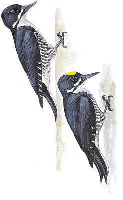| Habitat | Conifer forests. Often closely associated with spruce, also found in pine, fir, tamarack, sometimes mixed with deciduous trees such as aspen or willow. Favors areas with many standing dead trees, as after fire or floods. May concentrate in areas with big infestations of wood-boring insects. |
