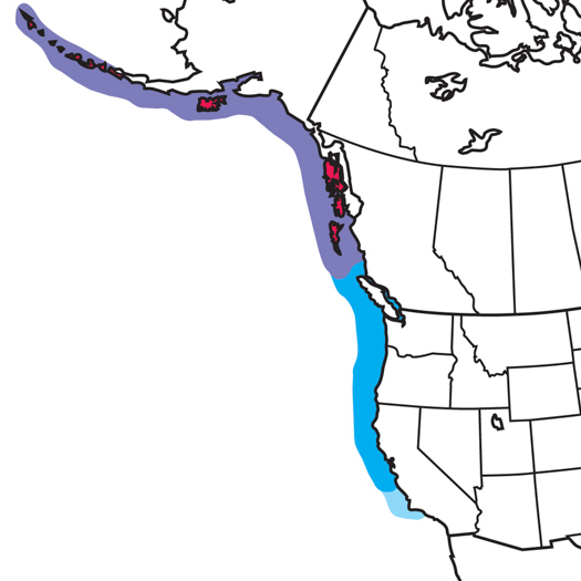 Some remain all year off southern Alaska, others move south to waters off California in winter. Disperses widely at sea after breeding. Of North American auks, this one is most likely to appear far inland. Records exist for many states and provinces east to Quebec and New York, south to Nevada and New Mexico. A few such records occur virtually every year, most in October or November.