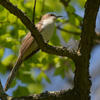 2-3, sometimes 4-5. May lay more eggs in seasons when caterpillars are abundant. Eggs blue-green, occasionally mottled darker. Incubation is by both parents, 10-14 days. Occasionally lays eggs in nest of Yellow-billed Cuckoo or other bird. Young: Fed by both parents. May leave nest within a week after hatching, climb about in branches; if disturbed, young bird may "freeze" in upright position, with neck stretched and bill pointed straight up. Age of young at first flight about 3 weeks.