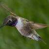 In courtship, male performs "pendulum" display, flying back and forth in wide U-shaped arc, making whirring sounds on each dive. Also buzzes back and forth in short flights in front of perched female. Nest site is in a tree or shrub, typically 4-8 feet above the ground, sometimes lower or higher (up to 30 feet). Placed on horizontal or diagonal branch. Nest (built by female) is a compact cup of grasses, plant fibers, spider webs, lined with plant down. The outside is camouflaged with lichens, dead leaves, other debris.