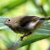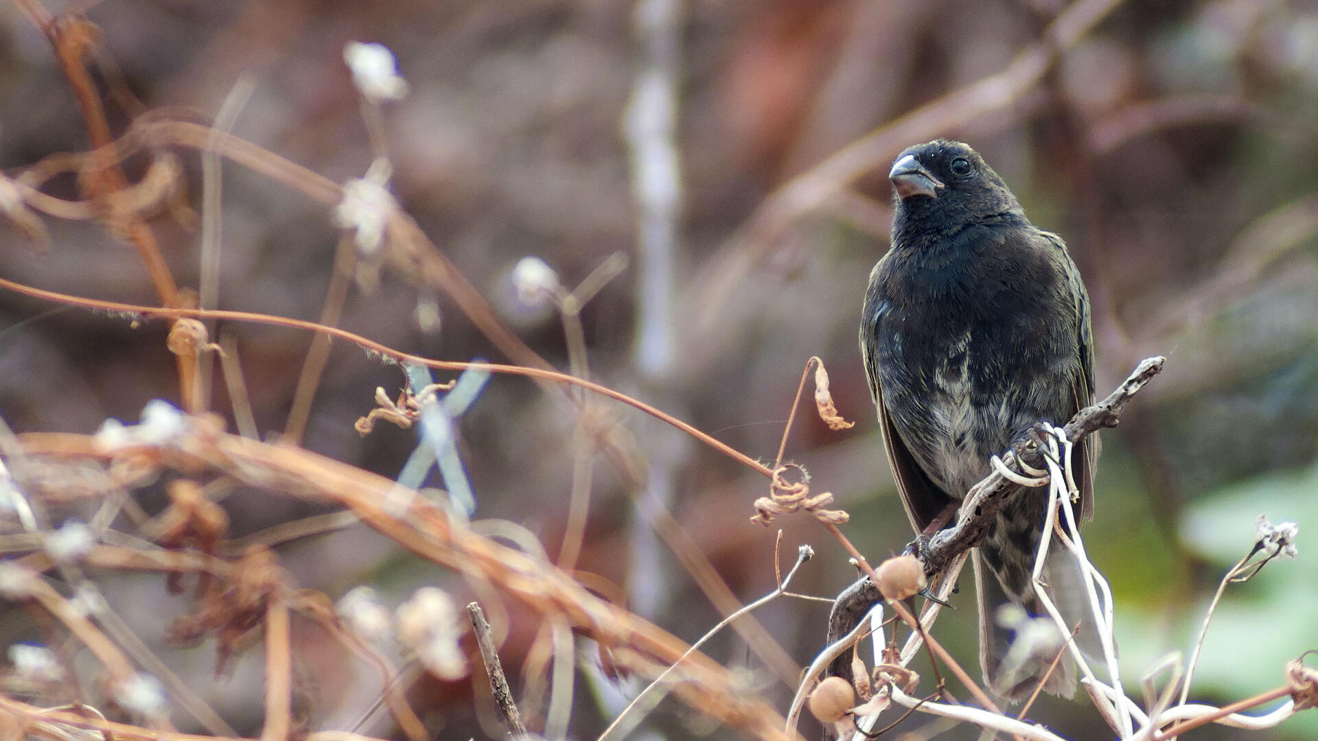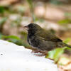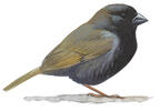 Widespread in the Caribbean region is this dark, stubby little finch. Black-faced Grassquits live in brushy fields, clearings, and the edges of woods, often gathering in small flocks. Common in the Bahamas, they have strayed to Florida on several occasions.
