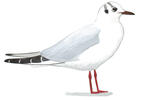 Versatile in feeding. Searches for food while walking or swimming, or swoops down to take items from surface while flying; sometimes catches insects in high flight. Black-headed Gulls also steal food from each other and from other birds.