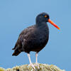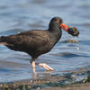 Mostly mussels, limpets, other shellfish. Diet varies with place and season, but feeds mostly on mussels where they are abundant; also limpets, whelks, urchins, crabs, marine worms, beetle larvae. Young birds, newly independent, may eat fewer mussels at first, perhaps lacking the skill to open them.