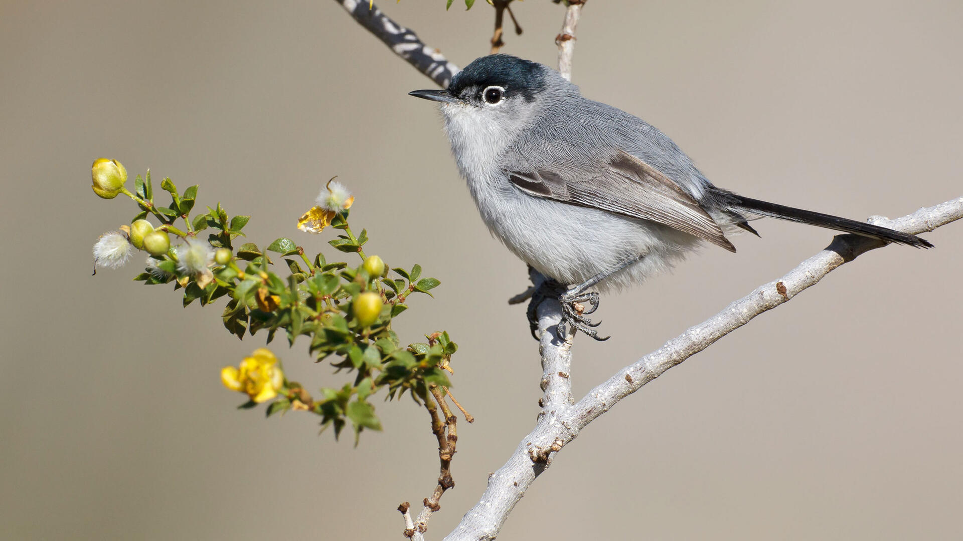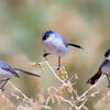 Pairs may remain together all year, defending permanent territories. Cowbirds often lay eggs in nests of this species, and some gnatcatcher pairs wind up raising only young cowbirds. Nest site is in a low shrub, usually in a vertical fork less than 5' above the ground. Nest (built by both sexes) is a compact open cup of plant fibers, grass, weeds, strips of bark, spiderwebs, plant down, and other items, lined with softer materials such as fine plant down, feathers, and animal hair.