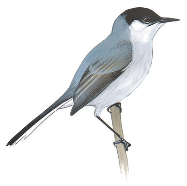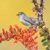Forages by moving about actively in shrubs and low trees, searching for insects. Often feeds more among leaves during summer and fall, more on bare twigs and branches during winter and early spring. Sometimes hovers to pick items from foliage. Unlike Blue-gray Gnatcatcher, rarely flies out to catch insects in mid-air.