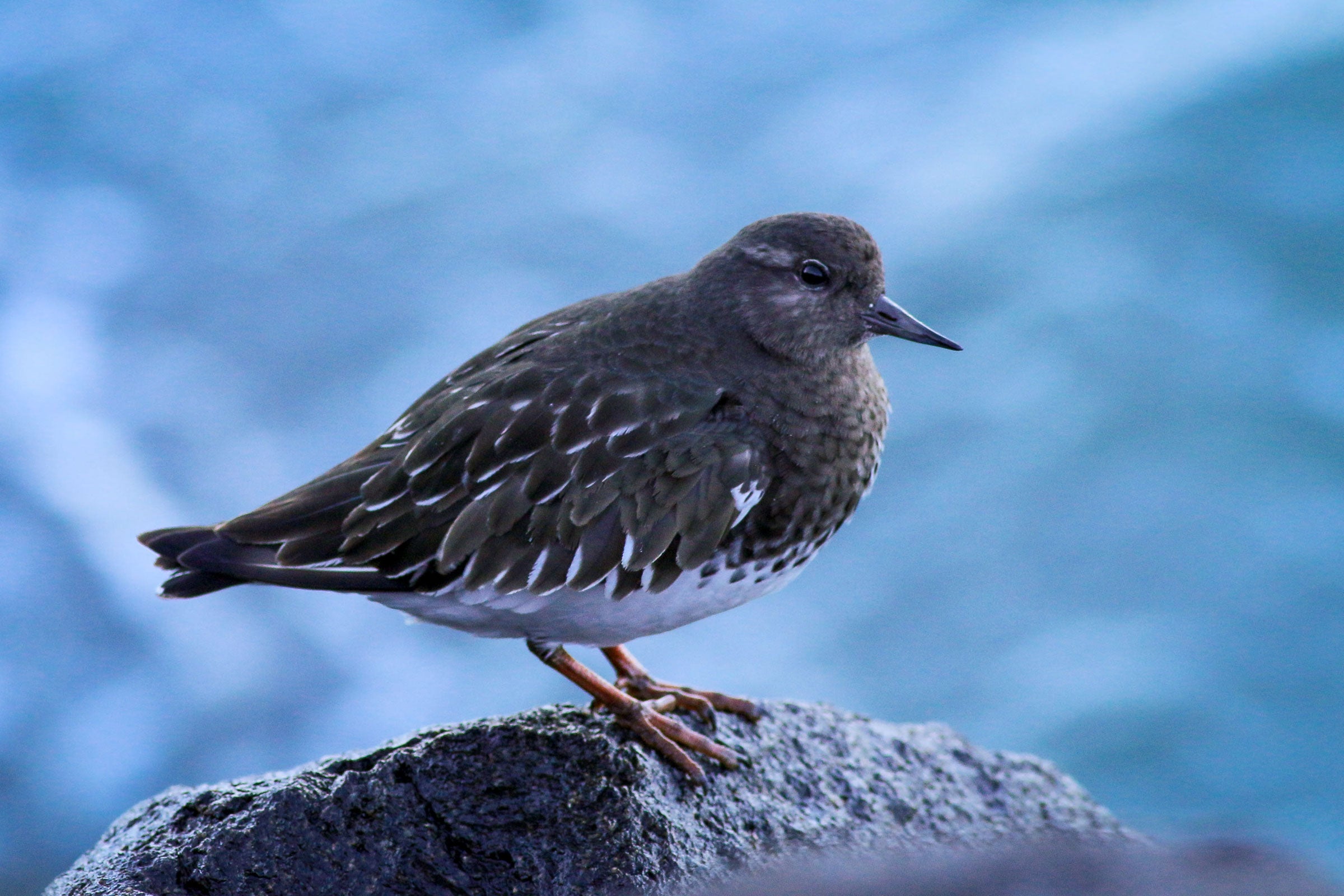 This is a characteristic bird of wave-washed rocky shorelines along the Pacific Coast in winter. Against the background of dark rocks it is hard to see when it sits still, but it is usually moving, clambering about in search of barnacles and limpets.