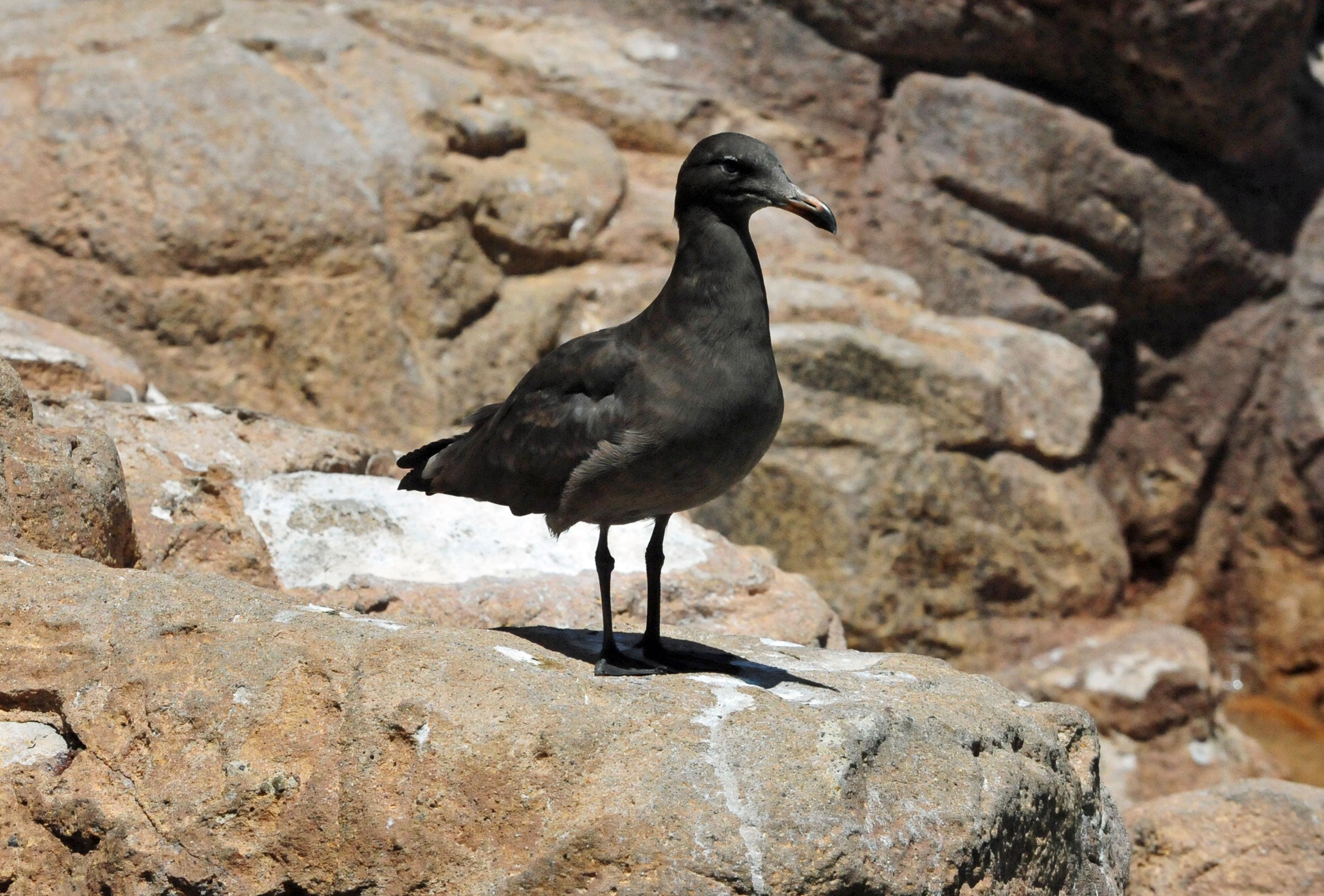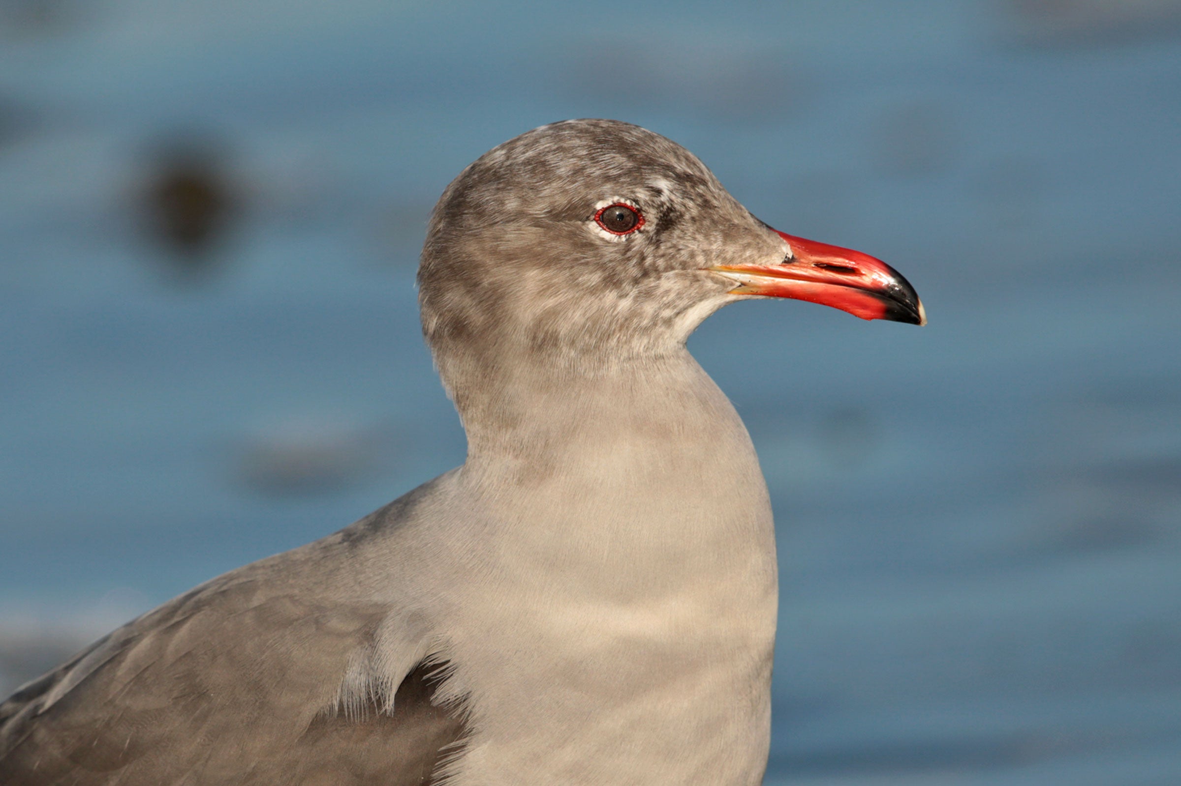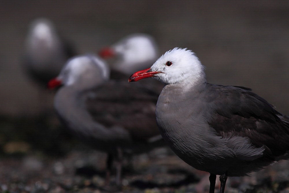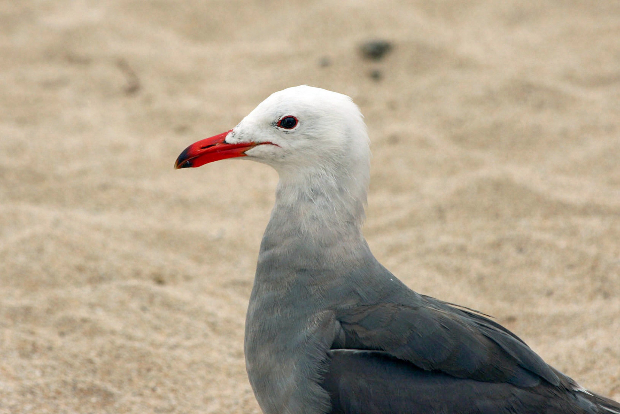 Every summer, flocks of these distinctive gulls move north along the Pacific Coast from their nesting grounds in western Mexico. This movement is timed with the northward flight of Brown Pelicans; when a pelican comes to the surface after plunging into the water for fish, a Heermann's Gull is often waiting to try to snatch the fish from the pelican's pouch. Although this gull is not large, it is aggressive, harrying other birds to make them drop their catch.